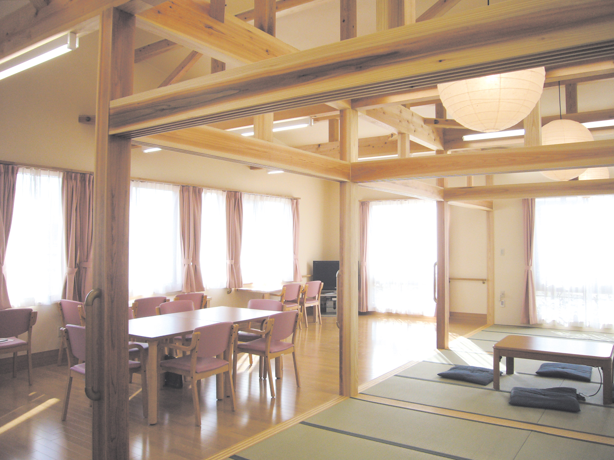 - 自然の大パノラマに包まれたアットホームなケアセンター自然景観を活かした施設は、利用者にやさしい開放的で快適な生活空間。ミニガーデンやテラスなども配備され、周りの自然と調和した佇まいです。