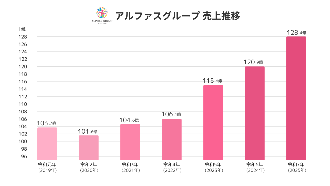 それぞれを事業単体で展開する企業は多くありますが、5つの事業をグループで展開し、地域にサービスを提供していることが私たちアルファスグループの特徴です。
