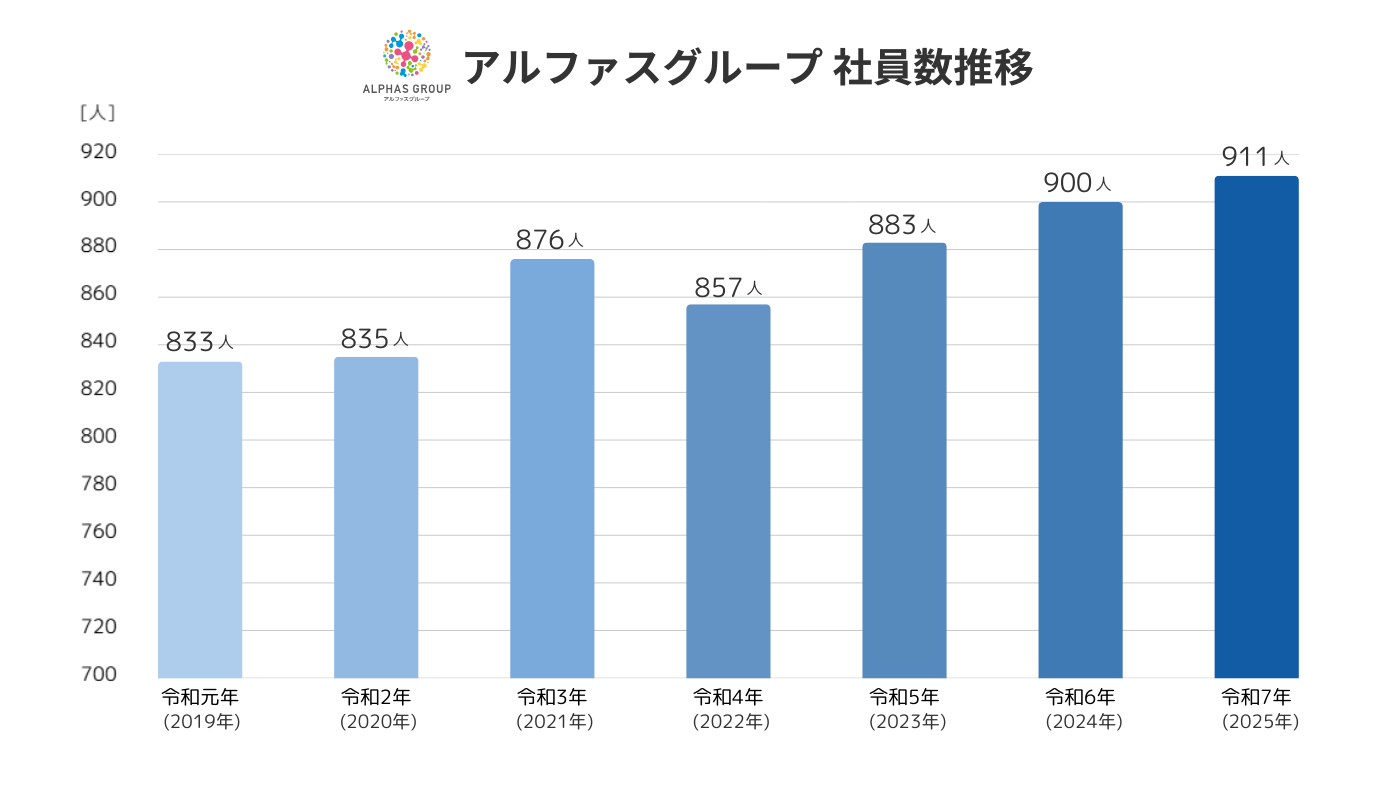 もちろん、複数の事業を行うだけで自然と新たな連携が生まれる訳ではありません。社員一人一人が常に新たなアイデア・発想や課題を持ちながら、仕事に向き合っているからこそ生まれるものだと思っています。この他とはちょっと違う視点・発想で物事を考える「プラスαの新発想」がアルファスグループの成長の原動力です。