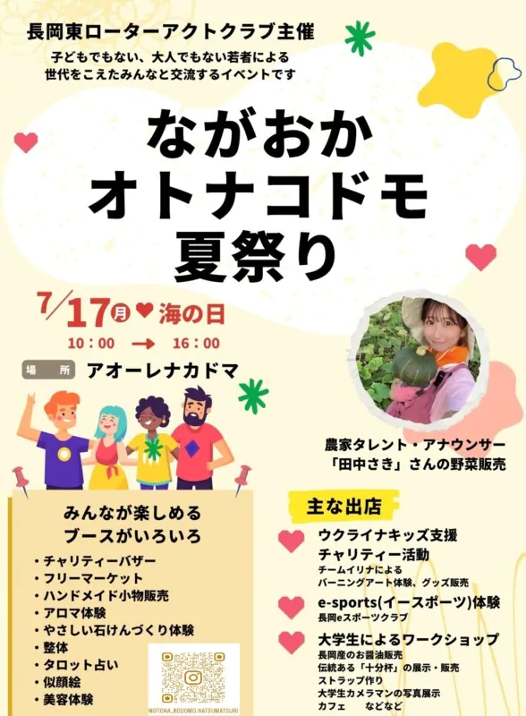 オトナコドモ夏祭り 詳細はこちら:ながおかオトナコドモ夏祭り – アオーレ長岡 (ao-re.jp)