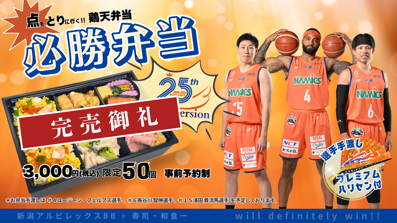 アルビBB 25周年祭の特別な一日に、勝利を願う「必勝弁当」をぜひお楽しみください。