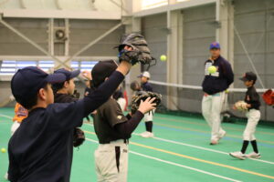 プロの選手・コーチよりキャッチボールの基礎、守備練習、バッティングなど… 野球の楽しさにふれながら、基本の「投げる・捕る・打つ」のコツを教えてもらいました。