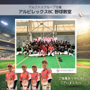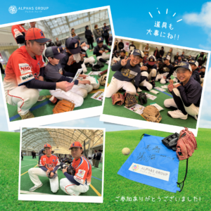 子供たちが夢に向かって挑戦し、成長していく姿を支援するためにアルファスグループはスポーツを通じた多様な取り組みを行っています。プロ野球選手との触れ合いを通して、技術だけでなく、目標に向かう力を学ぶ機会となって頂ければ嬉しいです。