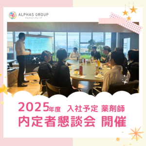 内定者懇談会には2025年入社予定の薬学生内定者が参加し、内定者同士また先輩薬剤師との交流・親睦を深めました。