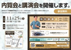 クリニックでの村岡院長先生の講演会は院内1階2階の2つの会場をご用意し、計200名以上の方に向け講演を実施いただきました。