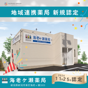 新潟市東区にある「海老ケ瀬薬局」が"地域連携薬局"に認定されました。エヌ・エム・アイ薬局では17店目となる地域連携薬局となります。