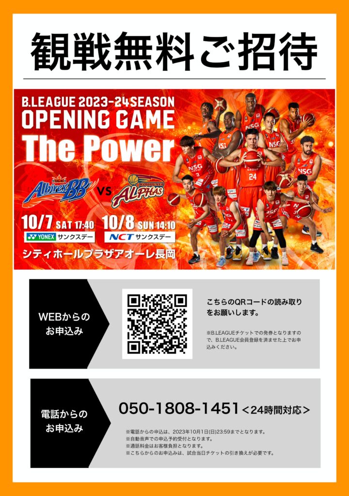 【新潟アルビレックスBB】長岡市民様オープニング試合へ無料ご招待!!