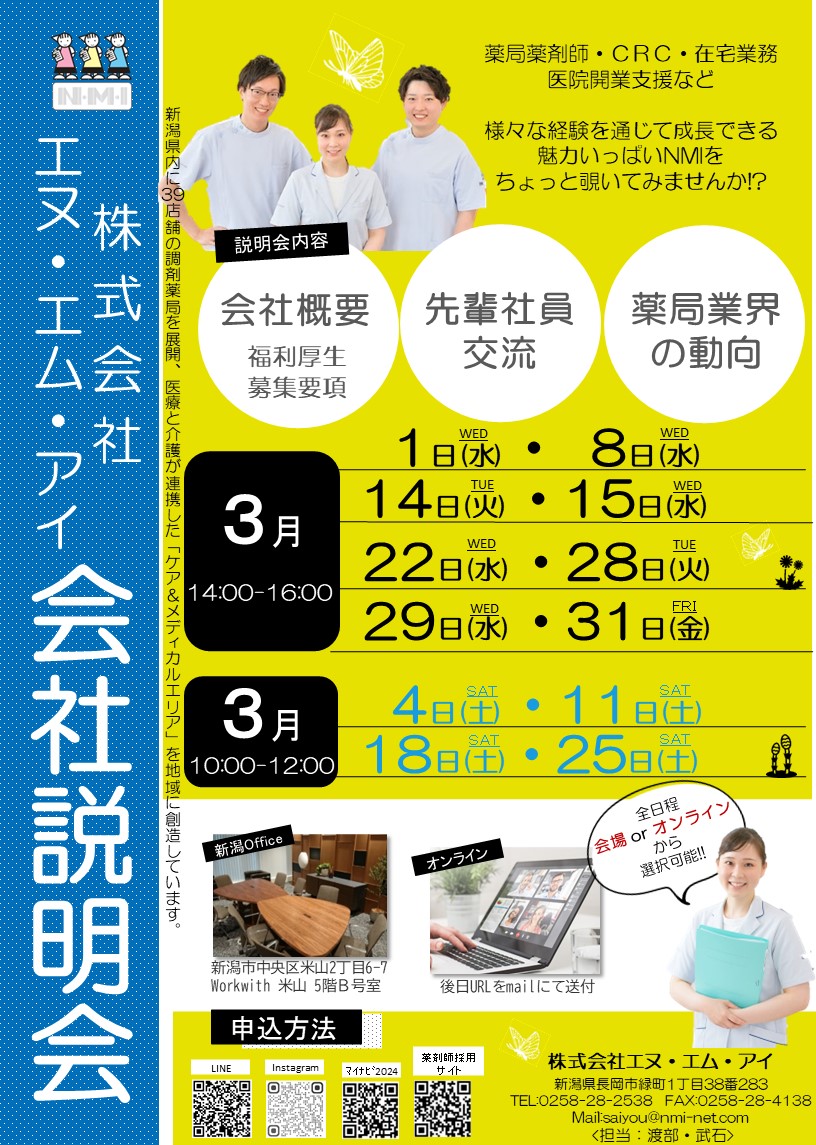 採用HP、マイナビ2024、薬キャリ1st 2024、LINEにて