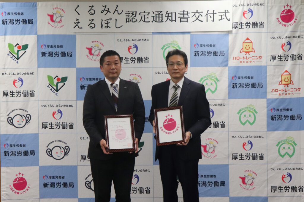 8/31(木)に㈱クレアメディコが新潟労働局より「えるぼし」認定を取得し交付式に参加してきました。