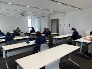 コロナウイルス対策として受講前の検温、定時の換気、手洗い、十分な間隔を確保して